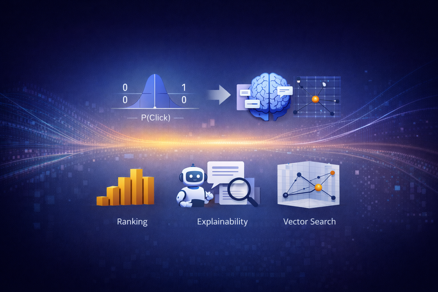 Python · PyTorch · LLMsTwo-stage ad ranking system blending probabilistic CTR prediction with LLM-powered explanations and custom vector scoring.